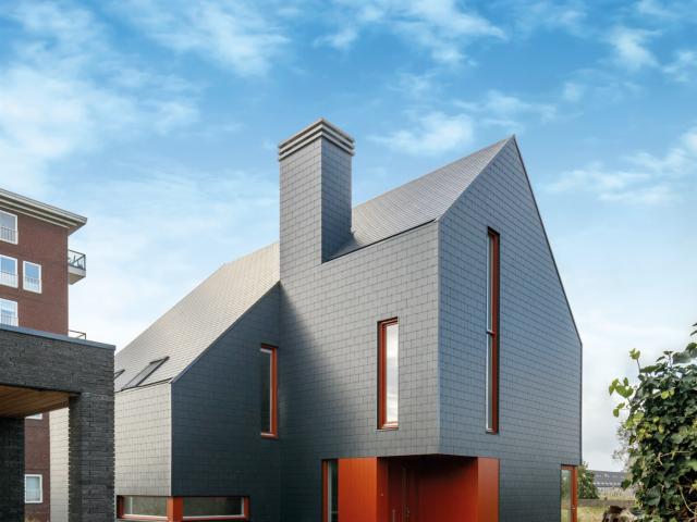Ontdek ook ons gamma Cedral leien voor dak en gevel, met maar liefst 10 plaatsingswijzes. Met horizontale, diagonale, gestreepte en verticale effecten kan je perfect inspelen op de huidige trends. Ons uitgebreid gamma kleurschakeringen en de eindeloze combinatiemogelijkheden met andere bouwmaterialen (zoals baksteen, hout, ...) staan garant voor een moderne en uitgesproken architectuur.