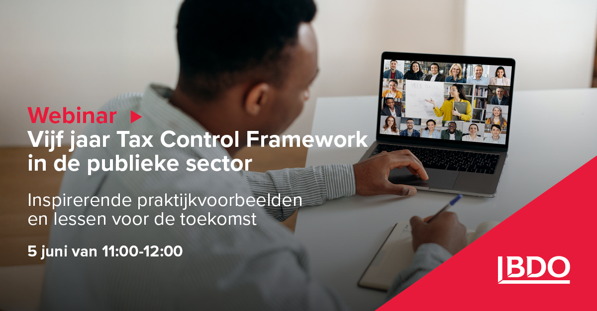 Om antwoord te geven op deze vragen heeft BDO vijftig representatieve TCF-trajecten onderzocht die zij als adviseur in de afgelopen jaren hebben begeleid. Tijdens het webinar deelt BDO de belangrijkste onderzoeksresultaten en inspirerende praktijkvoorbeelden. Ook delen ze hun visie op de toekomst van het TCF in de publieke sector en de praktische invulling daarvan.