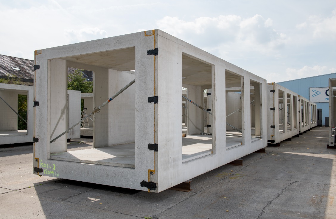 Minimalisering van het materiaalgebruik stond voorop bij de ontwikkeling van het concept. Doordat de modules grotendeels in één keer worden gestort is het mogelijk de wanden en vloeren dunner dan normaal uit te voeren. “De casco’s zijn zo ge-engineerd en berekend dat we de wanden en het dak in een dikte van 100 millimeter kunnen leveren. De funderingsbalken zijn geïntegreerd in het casco,” vertelt Verhagen. De modules hebben bovendien geen cementdekvloer nodig. Het resulteert in een betonreductie van ongeveer 30 procent. Dat vermindert niet alleen de CO²-voetafdruk, maar ook de materiaalkosten. De modules kunnen bovendien voldoen aan de eisen ten aanzien van Bijna Energie Neutraal Bouwen (BENG).