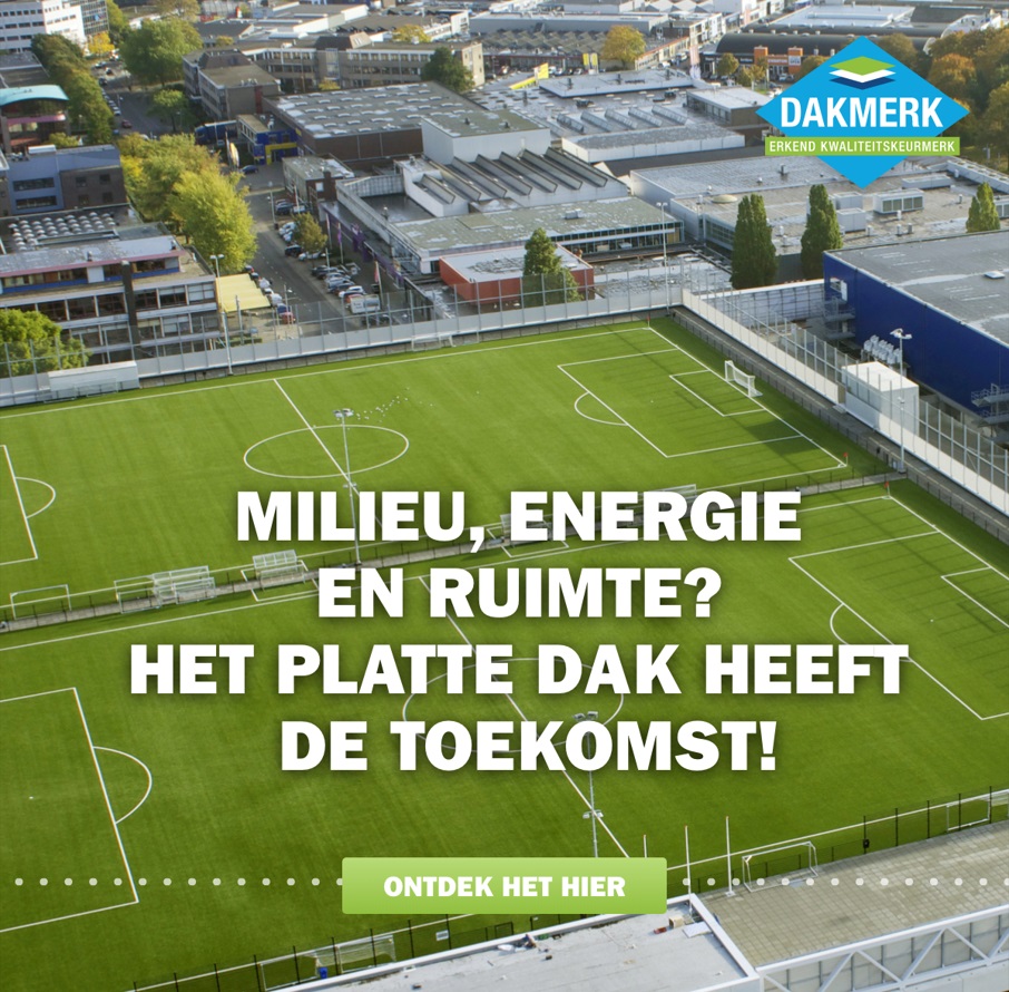‘Om even in de vergelijking van zojuist te blijven: de afgelopen jaren hebben de DAKMERK dakaannemers zo’n 300 voetbalvelden aan multifunctioneel dak tot ontwikkeling gebracht. Dat vind ik indrukwekkend. Naast groendaken gaat het dan vooral ook om energiedaken. Daken met zonnepanelen die ons onafhankelijker maken van olie en gas – een absolute noodzaak. De opgewekte stroom hoeft ook niet ver te reizen. En zonnepanelen op het platte dak houden het landschap groen. Energiedaken zijn dus goed voor het milieu, de groene omgeving én voor de portemonnee. 'Wat wil je nog meer?’