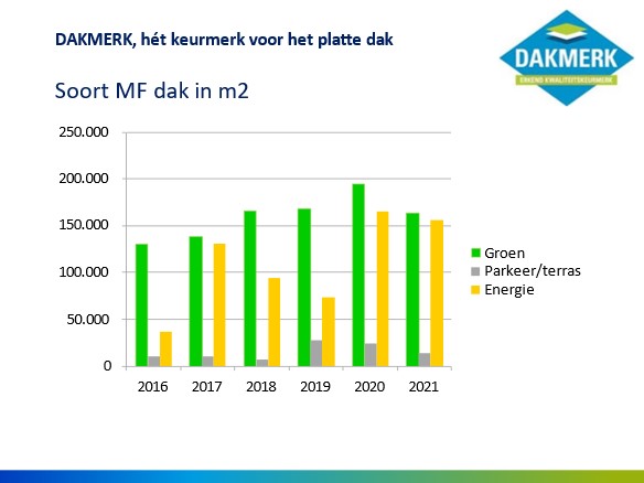 Het multifunctionele gebruik van platte daken wordt steeds gewoner. Niet eerder lag het aantal vierkante meters daken met zonnedaken zo dicht bij dat van de groendaken. Parkeerdaken lijken de laatste twee jaar weer wat aan populariteit te verliezen.