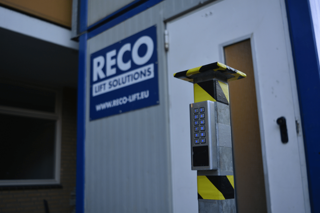 De tijdelijke personenlift is op de begane grond direct toegankelijk vanaf de straat. Om te voorkomen dat onbevoegden via de lift het woongebouw ingaan, is de deur standaard voorzien van een codeslot. Dat is handig, want dan kunnen de bewoners de code telefonisch doorgeven aan eventuele thuiszorg of familie, zonder het risico dat iemand de sleutel kwijtraakt.