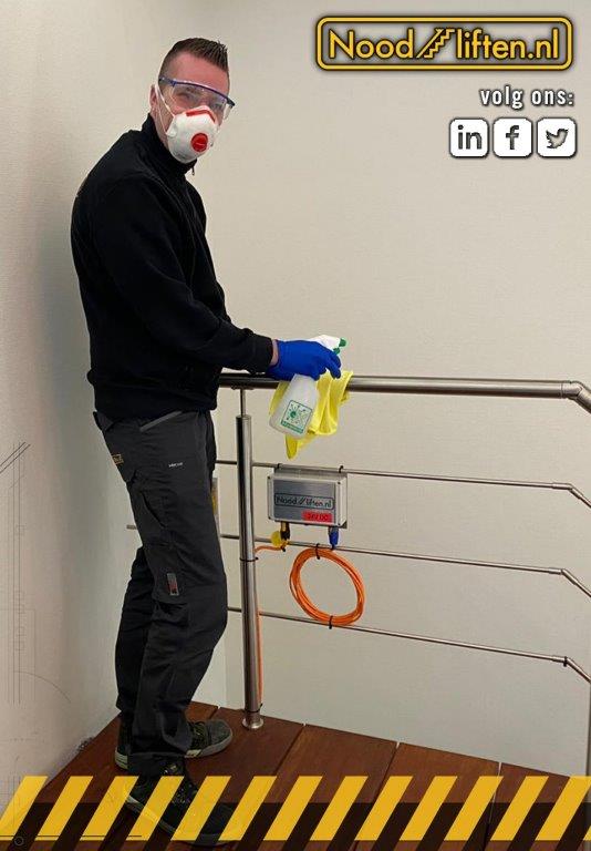 Om écht een stukje veiligheid te kunnen bieden, lanceerde Noodliften ook zijn eigen coronaservice: bij iedere offerteopname, montage en demontage worden de trapleuningen, liftknoppen en deurklinken in het trappenhuis grondig schoongemaakt met antibacterieel reinigingsmiddel. Zo wordt de kans op besmetting met het virus zoveel mogelijk geminimaliseerd. Deze coronaservice wordt nu, met het oog op een mogelijke tweede virusgolf, verlengd.