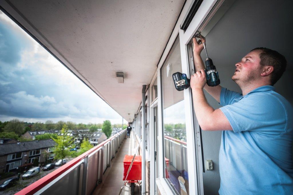 SKK neemt de kozijnen goed onder handen. Harold: “We plaatsen HR++ glas en vernieuwen het hang- en sluitwerk. Als gecertificeerd bedrijf Politiekeurmerk Veilig Wonen (PKVW) nemen we de veiligheidseisen meteen mee in onze werkzaamheden. Alle woningen worden voorzien van gecertificeerd beslag en de draaidelen worden door de monteurs natuurlijk ook direct goed afgesteld. Je kunt alles maar beter in één keer goed aanpakken.”
