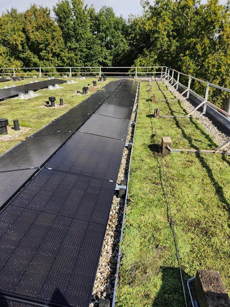 Vanuit een algemene aanbesteding van meerdere woningcorporaties is Tenten Solar de solarpartner geworden. ,,We werken veel met woningcorporaties, maar ook voor ons was een legplan, rekening houdend met een vegetatiedak een innovatie. We willen Nederland verduurzamen, dus we doen het graag,” aldus Astrid Kanters van Tenten Solar.