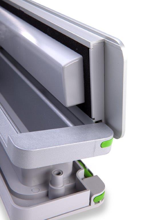 - Kleppen worden door de scharnierende veren in de rubbers gedrukt.