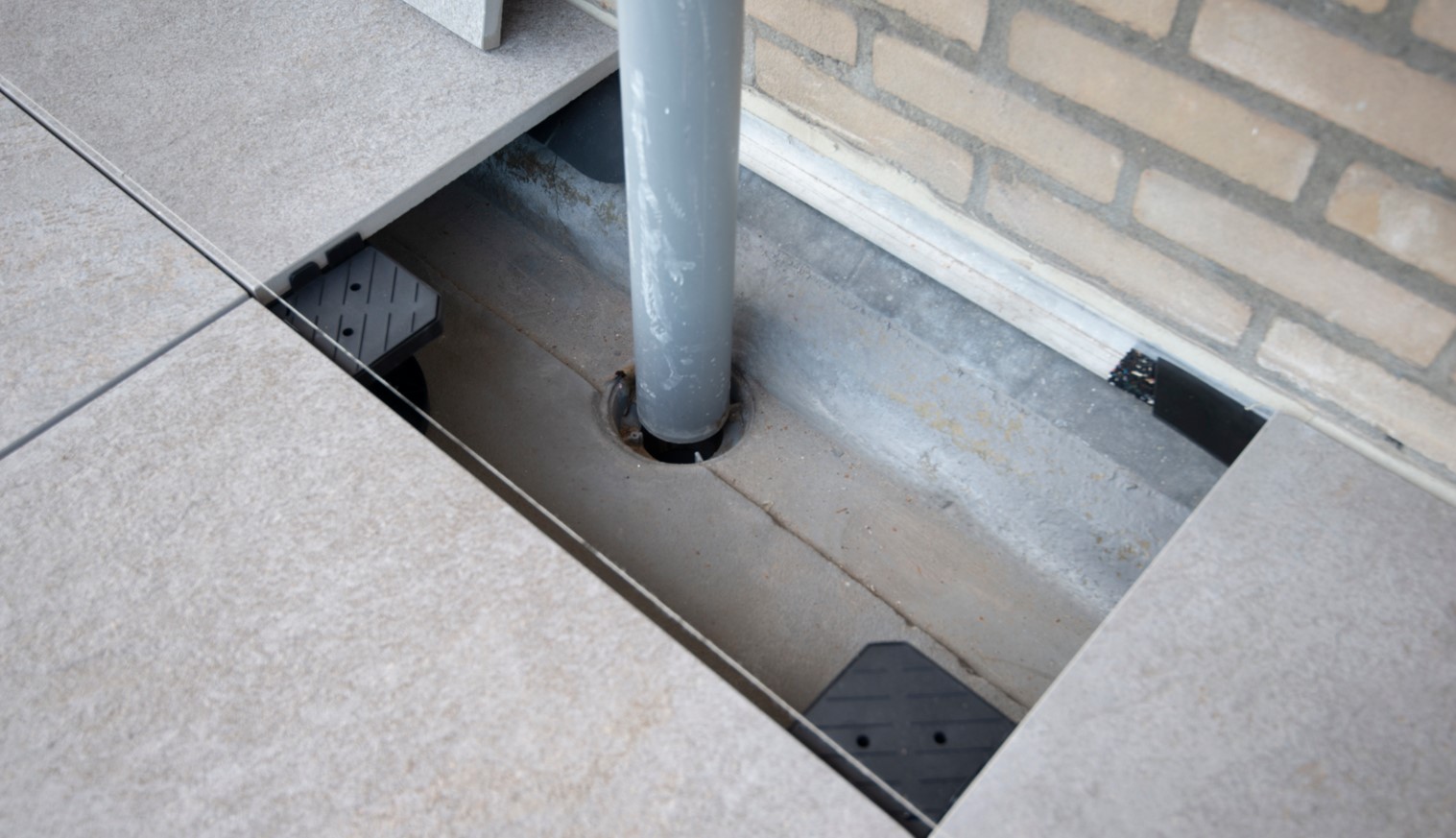 Niet alleen balkons kunnen worden opgehoogd met keramische tegels. Ook galerijen kunnen worden opgehoogd met het Dreen®Ceramicaplus systeem van Zoontjens. Het hoogteverschil bij de toegang tot een woning wordt hiermee aangepakt. Het systeem voorkomt tevens dat tegels gaan schuiven; de tegels worden namelijk voorzien van een hoekstuk, waarmee ze op de fixplate lock geplaatst en vergrendeld worden. Zo liggen de tegels gefixeerd, maar blijft de ondergrond (indien nodig) bereikbaar. Het loopoppervlak is vlak en stabiel.
