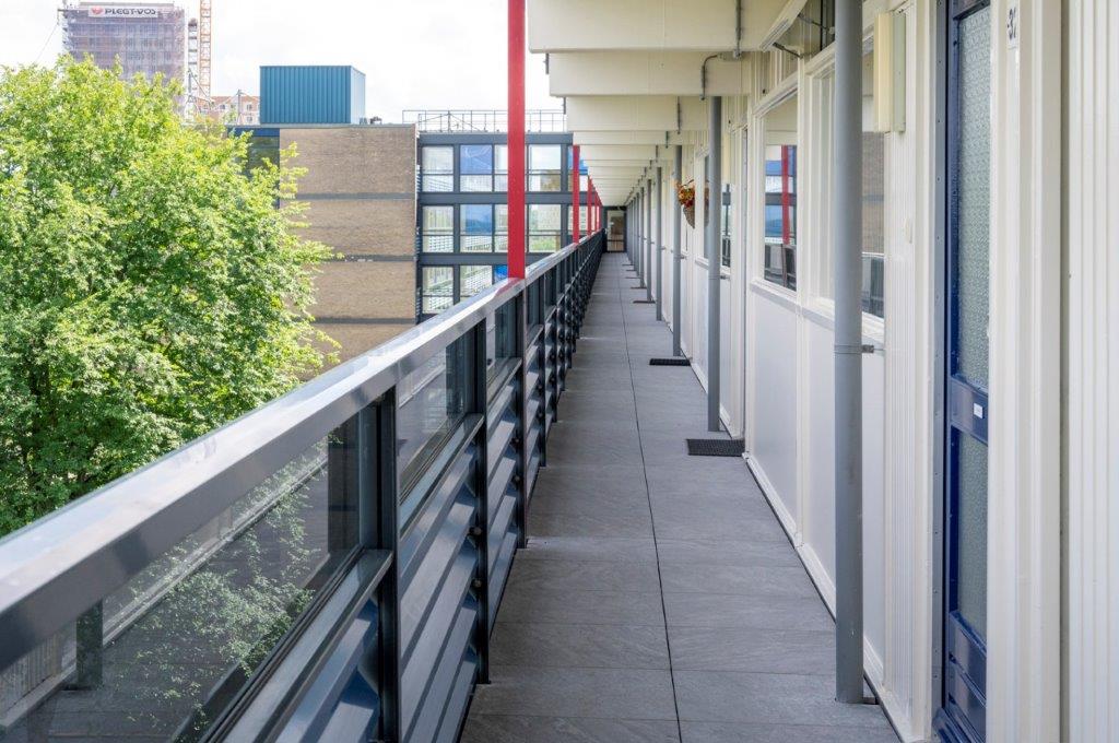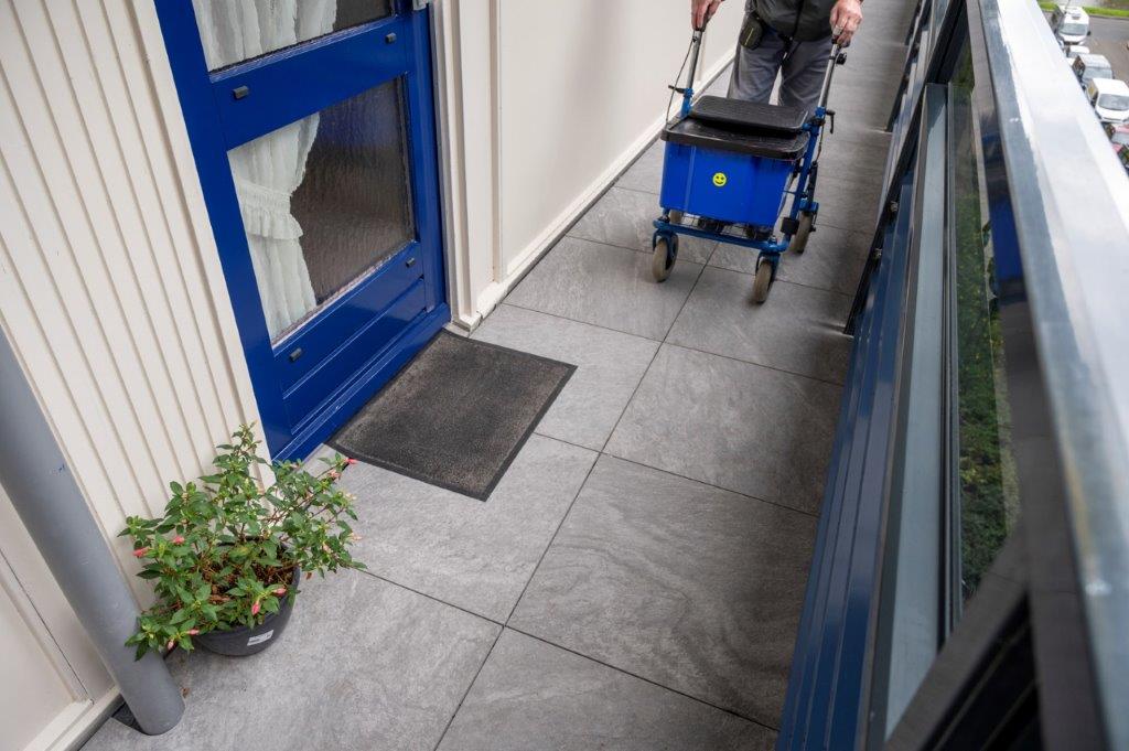 Dat afstellen had nog wel wat voeten in de aarde, omdat in flats die in de jaren zestig en zeventig van de vorige eeuw zijn gebouwd er nog wel hoogteverschil kan zitten tussen de verschillende drempels op één galerij. “Dat kan al gauw een of twee centimeter verschil per deur zijn en dat wil je wel oplossen met dit systeem”, vertelt Gaston van der Heijden van Zoontjens, die al in de beginfase nauw betrokken is bij de renovatie.