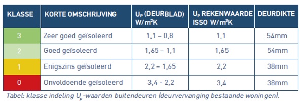 Naast de ‘Standaard’ voor de gehele woning, zijn ook streefwaarden voor afzonderlijke bouwdelen (zoals een deur) van een woning opgesteld. Deze streefwaarden zijn bedoeld als een of enkele delen van de woning worden verduurzaamd. Ze geven aan wanneer een enkel bouwdeel zeker ‘toekomstbestendig’ is. Voor nieuwbouwwoningen is de deur met een dikte van 54 mm al meer dan twintig jaar de minimale dikte. De overheid heeft deze deurdikte nu ook overgenomen om te kunnen voldoen aan de streefwaarden. De deur moet daarnaast een minimale u-waarde hebben van 1,4W/m2K die wordt behaald bij toepassing van een 54mm deur met HR++ glas en een kaderdichting.